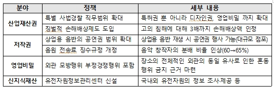 특히, 올해는 중앙행정기관 뿐 아니라 광역지자체의 지식재산보호정책을 소개했고, 제·개정된 관련 법령뿐 아니라 국회에 계류 중인 법안까지 제공하여 지식재산 보호제도 개선을 위한 범정부적 노력을 더욱 구체화했다.