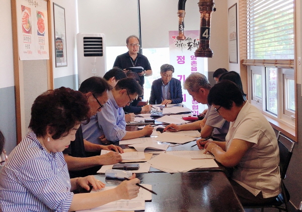 이 날 회의에서는 2019년 지역특화사업인 ‘정다운 케이크’ 사업과 ‘손 선풍기 지원사업’에 대한 중간보고와 수도권매립지 기탁성금을 활용한 2가구 주거환경개선사업에 대해 심의했다.