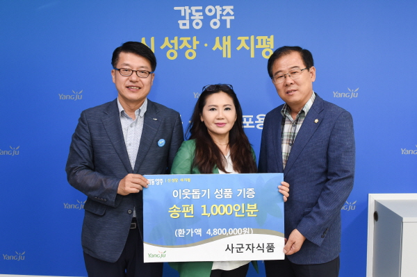 이날 전달식에는 김대순 양주부시장, 이희창 시의회의장을 비롯해 박서연 사군자식품 대표와 시 관계공무원 등이 참석했다.