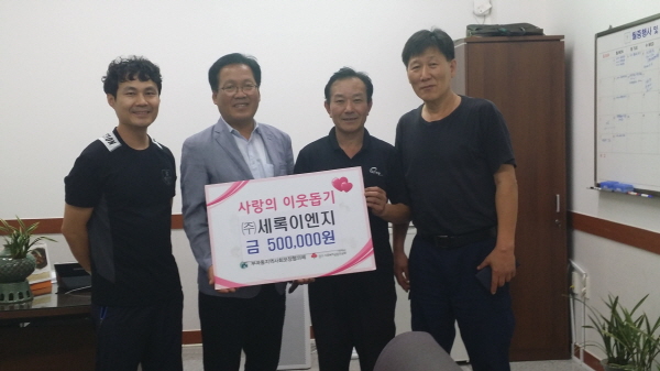 홍영철 ㈜세록이엔지 상무이사는“관내 소재업체로써 지역 주민들에게 조금이나마 도움이 되길 바라는 마음에서 성금을 마련했다. 앞으로도 꾸준히 후원활동을 이어나갈 것”이라고 말했다.