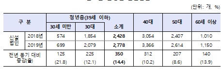 연령별로는 40대, 50대, 30대 순으로 법인을 많이 신설했다. 모든 연령대에서 지난해 7월 대비 증가하였으며 그중 청년층의 증가가 두드러졌다.