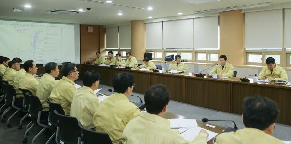 [미디어라이프(medialife)] 김상돈 의왕시장이 북상하고 있는 제13호 태풍‘링링’에 대비해 6일 오전 시청 소회의실에서 관계 부서장들이 참석한 가운데 대책 점검회의를 열었다.