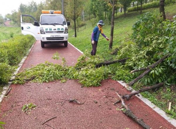 지난 7일 오전 7시를 기점으로 태풍경보가 발효됨에 따라 7일 시는 오전부터 관내 전 지역 공원녹지 내 피해지역 중 위험구간에 대한 안전조치를 위해 담당 공무원 및 근로자 40여 명이 현장에 투입됐으며, 태풍이 지나간 후 8일 오전부터 관내 전 지역에 대한 피해지 조사 및 복구 작업에 돌입했다.