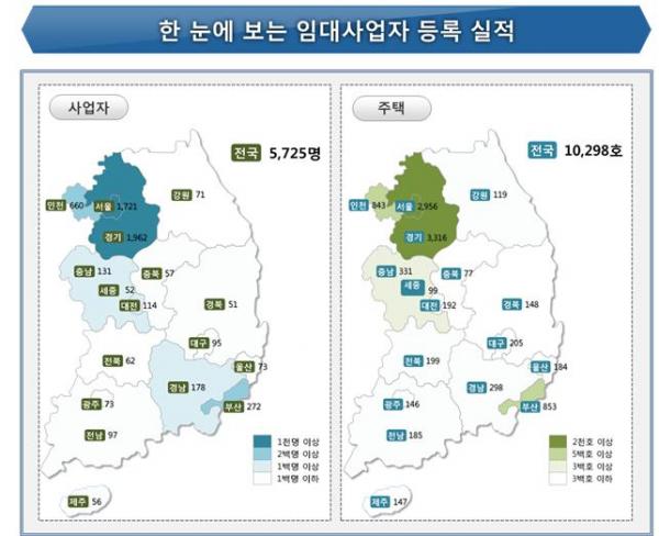 전국에서 8월 한 달간 5,725명이 신규 임대사업자로 등록하여, 현재까지 등록된 임대사업자는 총 45.2만 명이다.