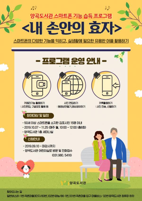 이번 행사는 50세 이상 스마트폰을 소지한 김포시민을 대상으로 10월 7일부터 11월 25일까지 매주 월요일 10시부터 12시까지 총 8회에 걸쳐 진행되며, 참가 신청은 9월 10일부터 마감 시까지 접수 예정이다.