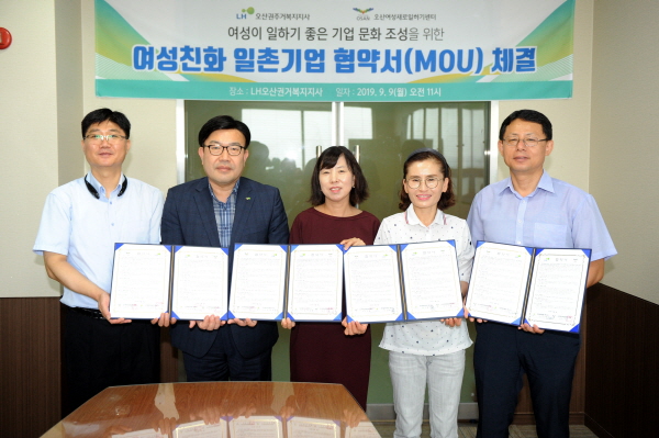 이날 협약식은 여성구직자의 안정적 일자리창출과 체계적인 지원을 위하여 오산여성새로일하기센터와 LH오산권주거복지지사의 업무협조 체계를 구축하여 여성취업지원 서비스를 One-stop으로 제공하여 여성의 경제활동 참여를 지원하는 것을 목적으로 추진됐다.