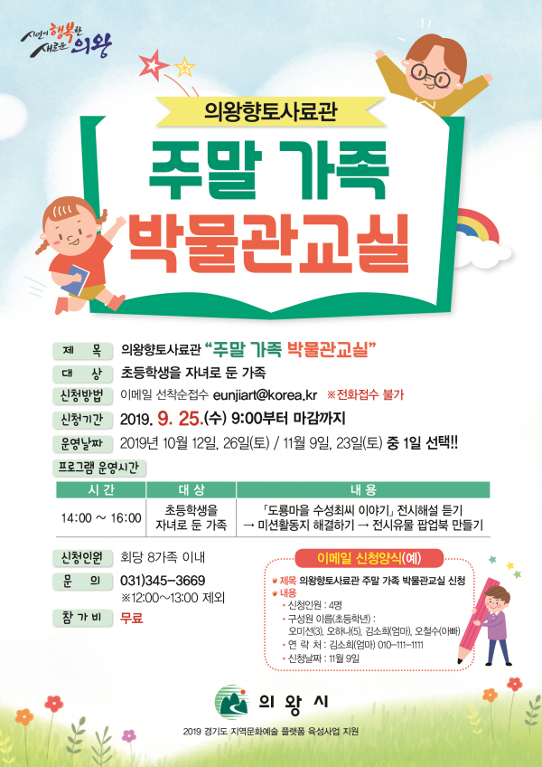 시 관계자는“자녀와 즐거운 추억을 만들 수 있는 이번 주말가족 박물관교실에 많은 관심과 참여를 바란다”고 말했다.
