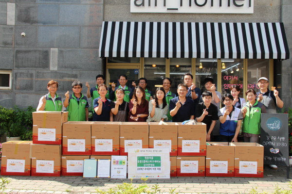 청송마을 중흥에스클래스 파크애비뉴 상가번영회는 2018년 3개 업체가 기부에 참여했으며, 올 해 설 명절에는 상가 내 14개 업체로 참여를 확대해 귤, 컵라면, 곶감 등을 자발적으로 모집, 관내 저소득층 10가구에 기부물품을 전달했다.