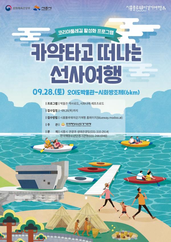 ‘카약 타고 떠나는 선사여행’은 문화체육관광부 공모사업인 코리아둘레길 활성화 프로그램 ‘시흥블루웨이 걷기여행’ 프로그램이다. 이번 여행의 주제는 ‘시흥의 미래의 바닷길과 선사시대 역사를 걷는 시간’으로, 카약을 타고시화호를 둘러보고 오이도 박물관까지 걸어가는 코스로 구성돼 있다.
