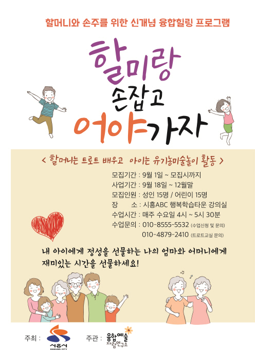 ‘할미랑 손잡고 어야가자’는 할머니는 트로트를 배우고 아이는 미술놀이 활동을 하는 할머니와 손주를 위한 신개념 융합 힐링 프로그램이다.