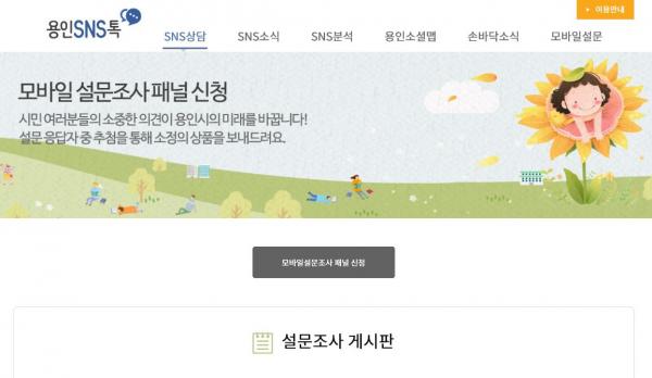 시 관계자는 “각종 정책 수립 시 시민의견을 최대한 수렴해 반영하려고 모바일 설문조사를 도입했다”며 “많은 시민이 용인시의 미래를 결정하는 패널로 참여하길 바란다”라고 말했다.