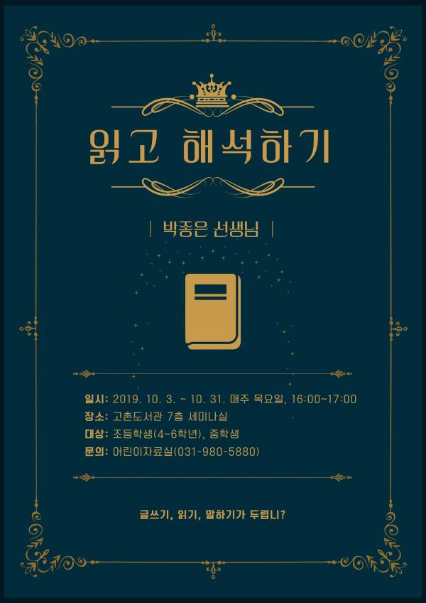 ‘읽고 해석하기’는은 초등학생 고학년과 중학생을 대상으로 17일부터 시작하며 전화 또는 방문 문의하면 된다.