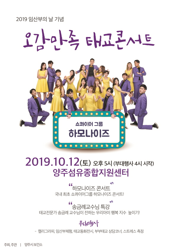 2부에는 세계합창올림픽 2관왕에 빛나는 국내 최초 쇼콰이어 그룹인 하모나이즈의 태교콘서트 공연을 통해 참석자들에게 큰 감동을 선사할 예정이다.