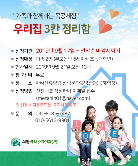 행사에서는 부모와 자녀가 함께‘우리집 3칸 정리함’을 직접 만들고 꾸며보는 즐거운 시간을 가질 예정이다.
