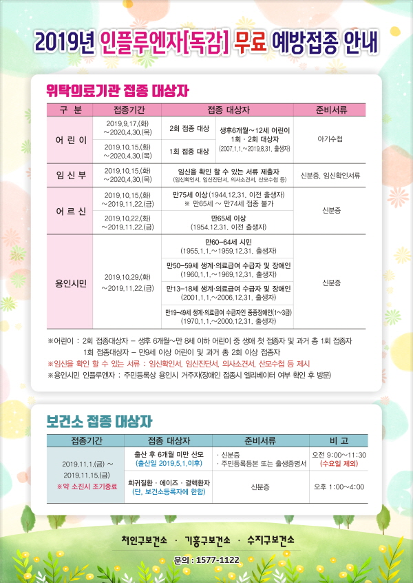 나이와 조건에 따른 접종기간과 접종기관 문의는 시 민원안내센터로 전화하면 된다.