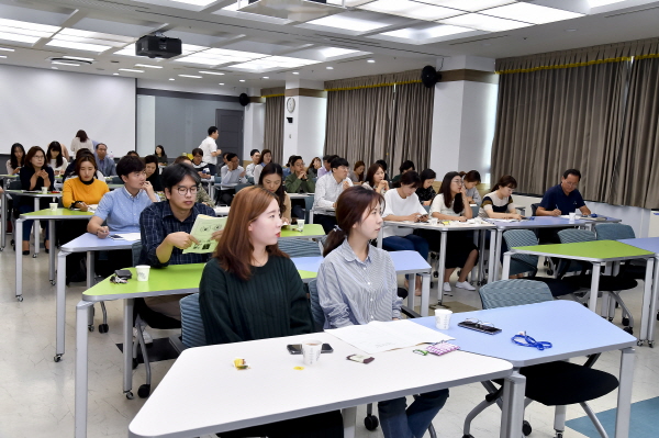 이날 시청 글로벌센터에서 진행된 교육에는 신규공무원을 포함해 6급 이하 공무원 100여명이 참석했다. 오전 10시부터 2시간 동안 이어진 1부 ‘보도자료 작성 교육’에서는 신현기 가톨릭대 행정학과 교수가 강사로 나서 ‘정책홍보란 무엇인가’에 대해 개념과 원칙을 정립하고 보도자료의 기본구성과 작성 원칙에 대해 강의했다. 특히 신 교수는 실제 시흥시 보도자료 사례를 들고 개선 방향에 대해 알기 쉽게 설명해 공직자들의 이해를 도왔다.