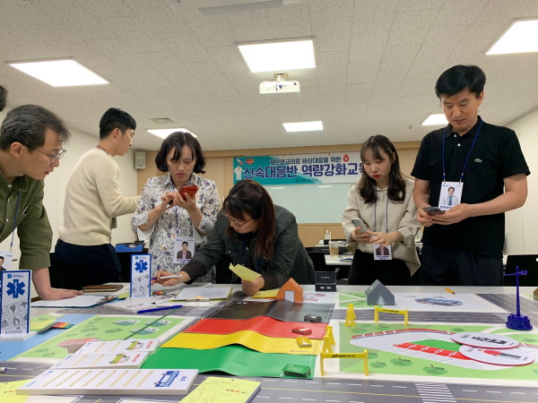 이번 교육에서는 중앙응급의료센터 경기응급의료지원센터 재난의료관리자의 진행으로 재난응급의료 비상매뉴얼 이론 강습과 도상훈련 실습을 병행 실시했다. 재난 발생 시 신속한 현장출동 및 응급처치로 시민의 생명보호와 피해를 최소화할 수 있는 역량 강화에 중점을 뒀다.