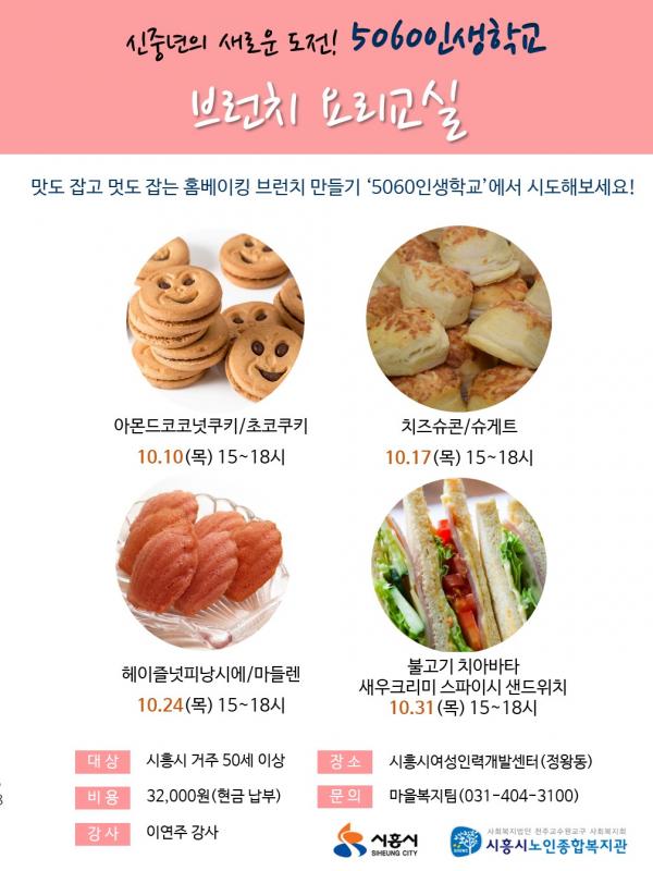 브런치 요리교실은 브런치에 관한 궁금증을 해소하고, 전문적이고 창의적인 요리 교육을 진행하고자 제과제빵 강의 경력이 다양한 이연주 강사를 초청해 10월에 총 4회 과정으로 진행될 예정이다.