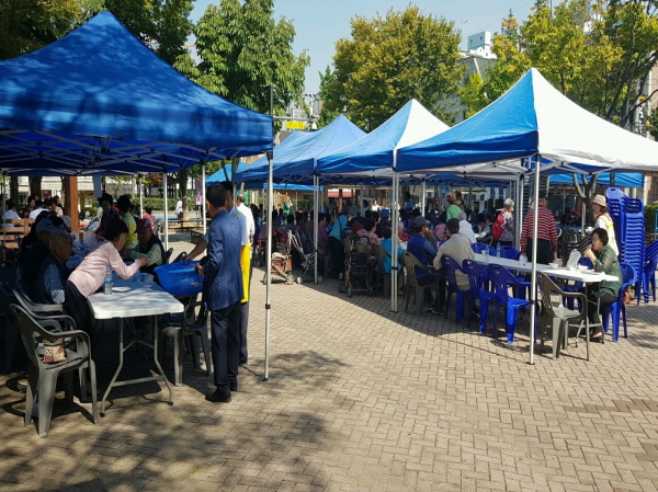 [8-20190926072605.jpg][미디어라이프(medialife)] 시흥시 장곡동은 지난 24일 노인의 날을 맞아 장곡동 중앙공원에서 어르신 효 잔치를 진행했다.