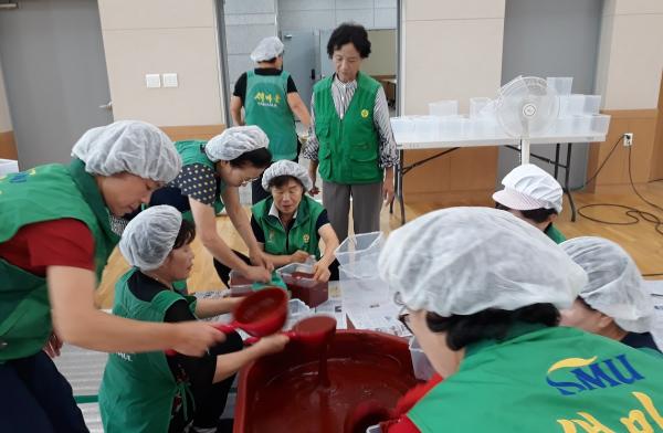 이날 행사에는 18명의 새마을협의회 회원들이 함께 참여하여 아침 10시부터 오후 3시까지 고추장을 사랑과 정성으로 담가 관내 저소득층, 독거노인 및 장애인가구 등 어려운 이웃 60여 세대에 전달했다.
