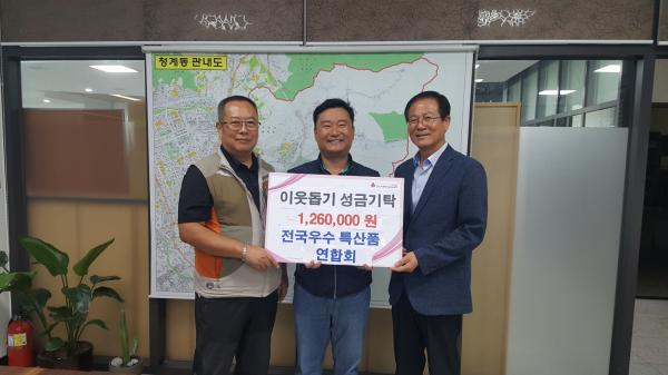 최근 전국우수특산품 연합회에서 지난 21일과 22일 이틀간 열린 의왕백운예술제 행사에서 특산품을 판매하고 얻은 수익금 중 일부인 126만원을 지역 취약계층을 위해 사용해 달라며 청계동 주민센터에 기탁했다.