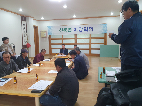 산북면은 지난 25일, 산북면 용담리 마을회관에서 9개리장 및 용담리 노인회장, 새마을지도자, 부녀회장 등 용담리 마을임원이 참석한 가운데 2차 ‘찾아가는 이장회의’를 개최했다.
