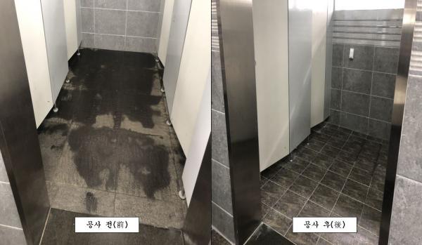 금빛수로 보트하우스 화장실은 바닥면의 구배가 불량해 화장실 청소 시 문제점이 있었고, 바닥 마감재가 수분을 흡수하는 재질로 시공이 돼 악취 등의 민원이 발생했던 곳으로 시는 이를 개선하고자 화장실 내 배수구 2개소를 추가 설치하고 바닥타일과 구배개선 등 보수공사를 완료했다.