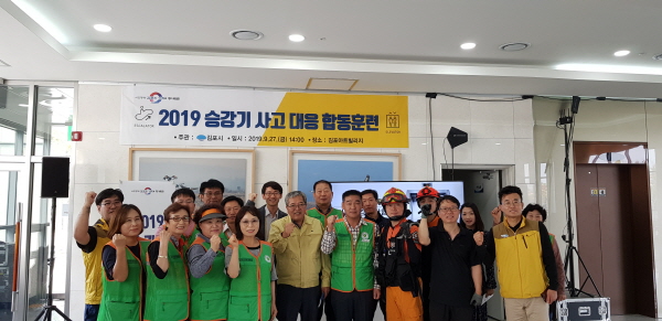 김포시, 김포소방서, 한국승강기안전공단, 김포시자율방재단, 승강기유지보수업체, 김포시청직장어린이집 등 약 60여 명이 참여한 가운데, 특히 사고 시 대처능력이 미약한 어린이들을 대상으로 사고 대응 요령 등 맞춤형 교육을 실시하고, 모의훈련 상황으로 정전으로 인한 이용자 갇힘 사고 상황에서의 대처요령과 긴급출동을 통해 이용자를 구조하는 내용으로 진행됐다.