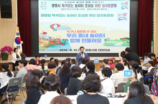 박승원 광명시장은 인사말을 통해 “오늘 어린이를 비롯하여 많은 시민들이 광명시 놀이터에 관심을 갖고 참여해 주셔서 감사드린다”며 “주민이 원하는 놀이공간에 대한 의견은 다양할 것이다. 아이, 청소년, 어른 등이 함께 공감할 수 있는 놀이터 조성을 위해 개성 있고 창의적인 토론으로 좋은 의견들을 많이 주시길 바라며 시민들이 주신 의견이 정책에 반영될 수 있도록 노력하겠다”고 말했다.