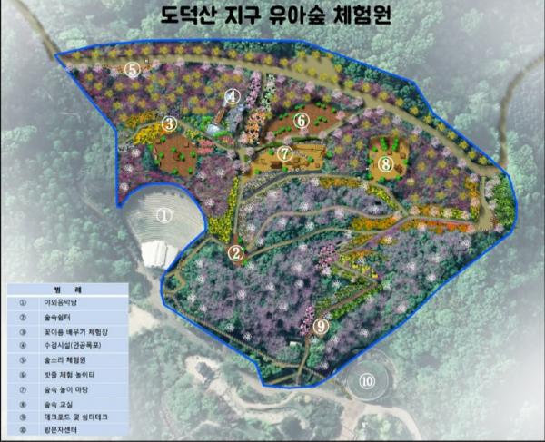 시는 어린이들이 복잡한 도심 속을 벗어나 숲에서 마음껏 뛰어놀며 자연과 교감하고 놀이를 통해 건강하게 성장할 수 있도록 유아숲체험원을 조성한다. 이에 인공시설보다는 자연체험 위주인 숲속놀이마당, 밧줄체험놀이터, 숲속교실, 꽃이름배우기체험장, 모래놀이 공간 등으로 꾸밀 계획이다.