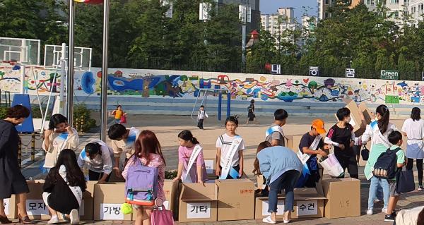 학생자치회와 학부모회 주관으로 진행된 이날 기부행사는 아침 등교시간을 맞아 전교생을 대상으로 재사용 가능한 옷, 신발, 모자, 인형, 담요 등을 기부받았다.