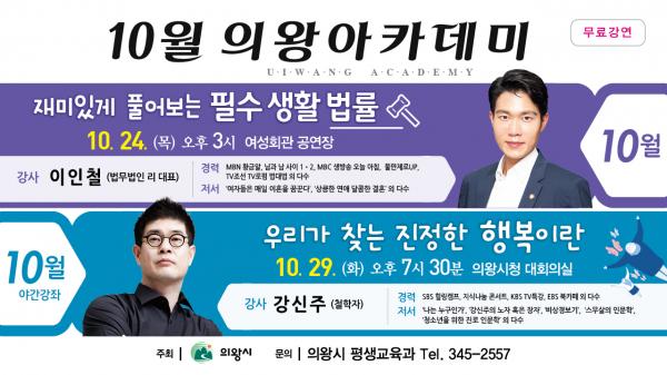 한편, 의왕아카데미는 의왕시민이면 누구나 별도의 신청 없이 무료로 참여할 수 있으며, 아카데미 회원으로 등록하면 매월 강연 초대 엽서를 받아볼 수 있다.