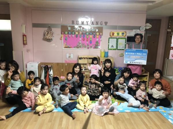 이번 성금은 어린이집 원아들이 시장놀이와 아나바다 나눔 장터 등을 통해 얻은 수익금으로 마련, 주변의 홀로 사시는 어르신 등 어려운 이웃을 돕고자하는 따뜻한 마음을 담아 전달했다.