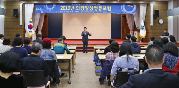 김상돈 의왕시장은“이번 포럼은 시민들이 한자리에 모여 지역과 성별, 연령에 차별 없는 토론의 장을 만들었다”며“앞으로 모든 시민이 조화롭고 행복할 수 있는 다양한 양성평등 시책을 마련해 시민들이 실생활에서 체감할 수 있도록 최선을 다하겠다”고 말했다.