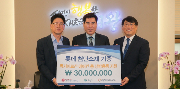 한편, 롯데첨단소재는 올해 2월 임직원들이 마라톤 대회를 통해 마련한 모금액으로 저소득 학생들에게 장학금을 기부하는 등 그동안 지역사회 나눔문화 실천에 선도적인 역할을 해오고 있다.