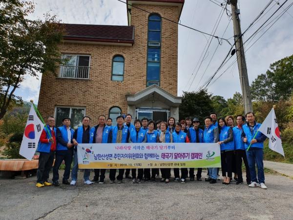 이번 캠페인은 태극기 전도사로 알려진 이주동씨가 남한산성면에 태극기 300개를 기부하면서 진행됐으며 남한산성면은 기부 받은 태극기를 주민자치위원회 위원들과 함께 관내 곳곳에 설치된 국기 게양대에 태극기를 게양하며 태극기 달아주기 캠페인을 실시했다.