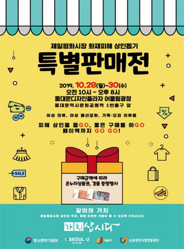 이번 특별 판매전은 지난 9월 23일 박영선 장관의 제일평화시장 화재 현장 방문 시 ‘조속한 지원 방안을 마련할 것’이라는 약속에 따라 중기부와 중구청이 상인회와 함께 기획한 행사이다.