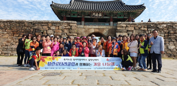 이날은 개인적으로 여행하기 힘든 저소득 독거노인 30여명을 모시고 오산정란로타리 회원 10여명과 남촌동지역사회보장협의체 위원 5명이 봉사자가 되어 충남 해미읍성과 수덕사 일원 등을 돌아보며 가을의 정취를 느끼고 힐링하는 시간을 가졌다.