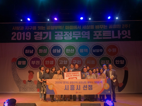 지난 25일 하남시 문화예술회관에서 개막한 ‘2019년 경기도 공정무역 포트나잇’에서는 시흥시를 포함한 경기도 15개 도시의 공무원, 민간단체와 시민이 함께 ‘2020년 경기도 공정무역 포트나잇’ 개막식 개최도시 선언식을 진행했다.