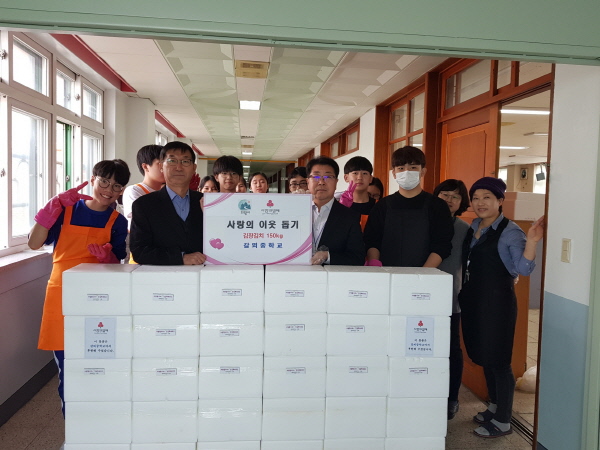 이날 학생들은 텃밭에서 그동안 정성껏 가꾼 배추와 무를 수확해 150kg 분량의 김장을 담가 어려운 이웃들에게 전달했다.