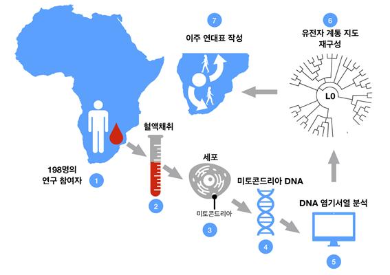 연구진은 현생인류의 가장 오래된 혈통이 20만 년 전 아프리카 칼라하리 지역에서 출현해서, 13만 년 전의 기후 변화로 인해 이주를 시작했음을 규명했다.