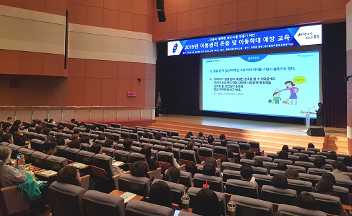 이날 아동보호 전문강사가 나와 유엔아동권리협약 내용과 아동학대의 정의를 알려주고 공직자와 아동보호전문기관, 신고의무자의 역할을 설명했다.