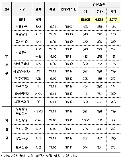국토교통부는 10월 3개 지구 공급 이후에도 올해 안으로 시흥장현, 화성동탄2 등 총 1만호 공급을 지속적으로 추진해 나갈 계획이라고 전했다.