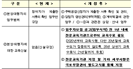 그 밖에 운영과정에서 나타난 주택공급제도의 미비 및 불편사항에 대한 개선했다