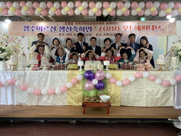 이날 생신축하연에는 관내 저소득 어르신 가운데 올해 칠순과 팔순을 맞으신 일곱 분의 어르신을 모셨다.