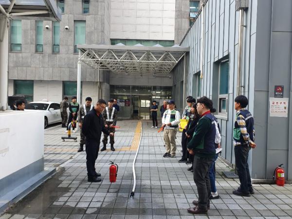 훈련 후 역북119안전센터 소방관들이 소화기와 소화전 사용법을 교육했다.