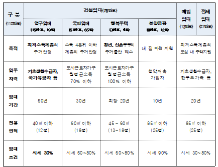 한국토지주택공사가 운영하는 공공임대주택 사업은 주거취약계층을 위한 정부 주거복지 정책의 핵심 사업으로 정부는 전체주택 대비 공공임대주택 보급률 9% 달성을 목표로 주거복지로드맵을 마련하고 다양한 유형의 공공임대주택을 공급하고 있다.