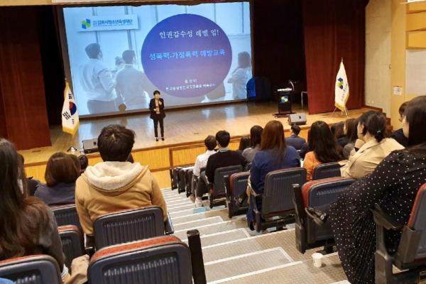 이날 교육은 지난 2월 실시한 ‘성희롱·성매매 예방교육’에 이어 성 평등한 조직문화 형성과 가정생활에서의 인권존중 의식 향상을 위한 성폭력·가정폭력예방교육으로 진행됐다.