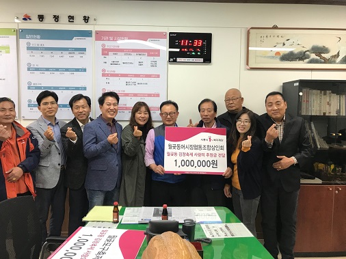 이번 전달금은 오는 11월 9일에 진행되는 월곶동 김장축제 진행을 위한 후원금을 월곶동 어시장협동조합상인회와 월곶포구축제위원회에서 각각 100만원씩 후원한 것이다.