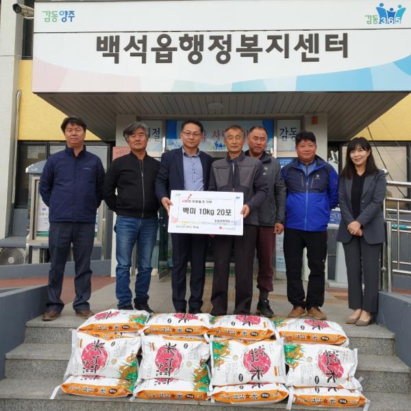 이날 기부된 쌀은 백석읍 내 복지사각지대, 한부모가정, 독거노인 등 저소득 가정에 배부될 예정이다.